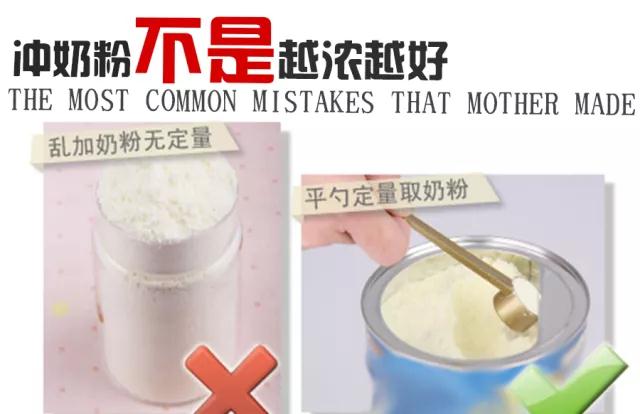 正解:按奶粉罐上的说明来添加奶粉量,而且,一勺是一平勺,不是一满勺!